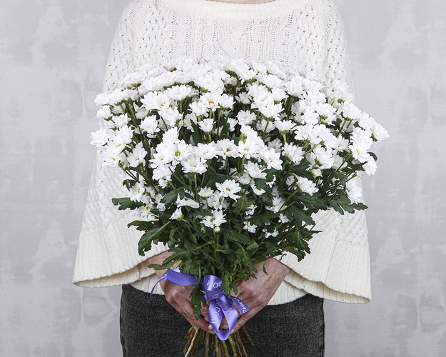 Cклад: хризантема кущова Сантіні 25 шт., Стрічка 1 шт.