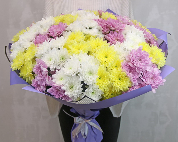 Букет з 39 хризантем кущових мікс в стильній упаковці.