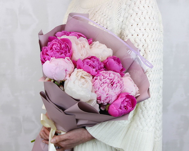 Букет з 11 півоній мікс у стильній упаковці
