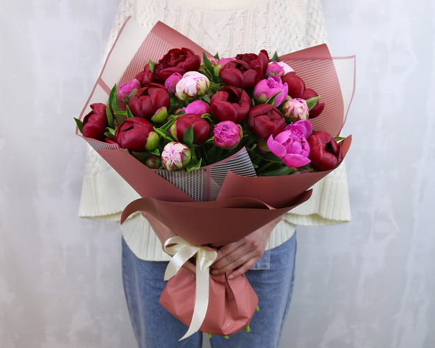 Букет з 25 півоній мікс у стильній упаковці