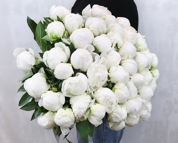 Бутони білі півонії схожі на маленькі пухнасті хмари або кульки морозива. Ніжні, ароматні ці квіти – ідеальний подарунок і для жінки, і для чоловіка, прекрасний вибір для дня народження, ювілею або річниці.